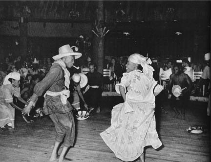 Photo from Lavinia Williams Yarborough’s Haiti-Dance, 1958 (third paragraph above): Pierre Desrameaux and Jeanne Raymond dance a banbòch after djouba.