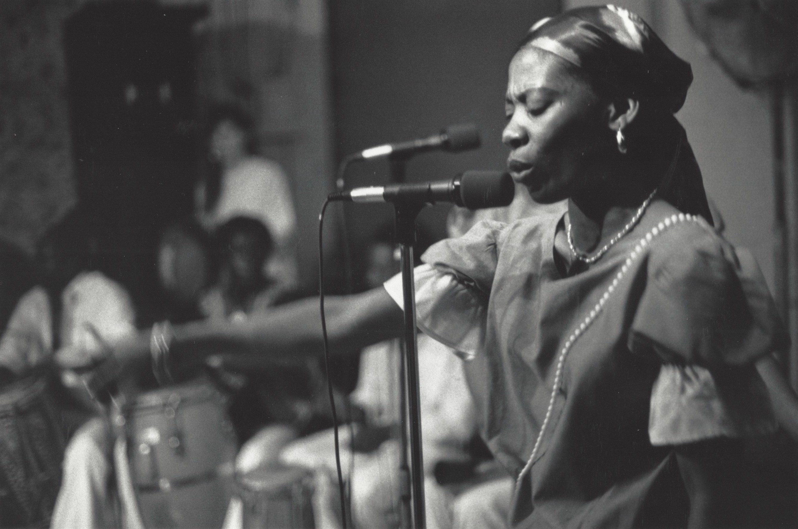 Jocelyne was above all an active Vodouyizan and distinguised herself in the societies of New York as an outstanding oundjenikon (song specialist) with a broad repertory. She achieved the status of manbo (priestess) as well. Jocelyne secured her residence in the United States with the 1987 amnesty. She traveled to Haiti and gradually played less with Makandal. She had no children, but was a loving aunt to her many nieces, nephews, and their children. She passed away in New York on July 22, 2016. We offer our condolences to the family, but we feel certain that her powerful voice now has the spirits of Ginen dancing.